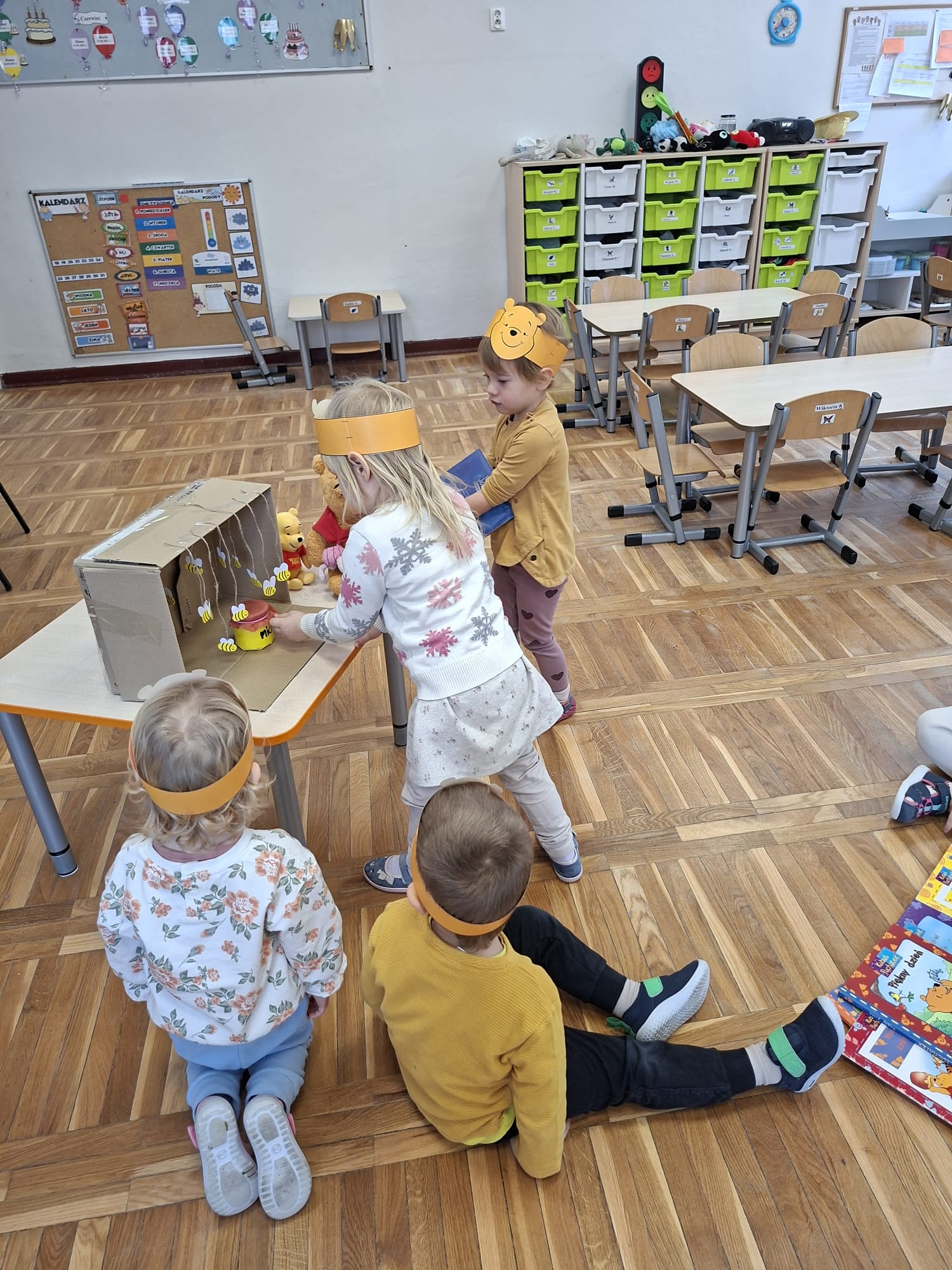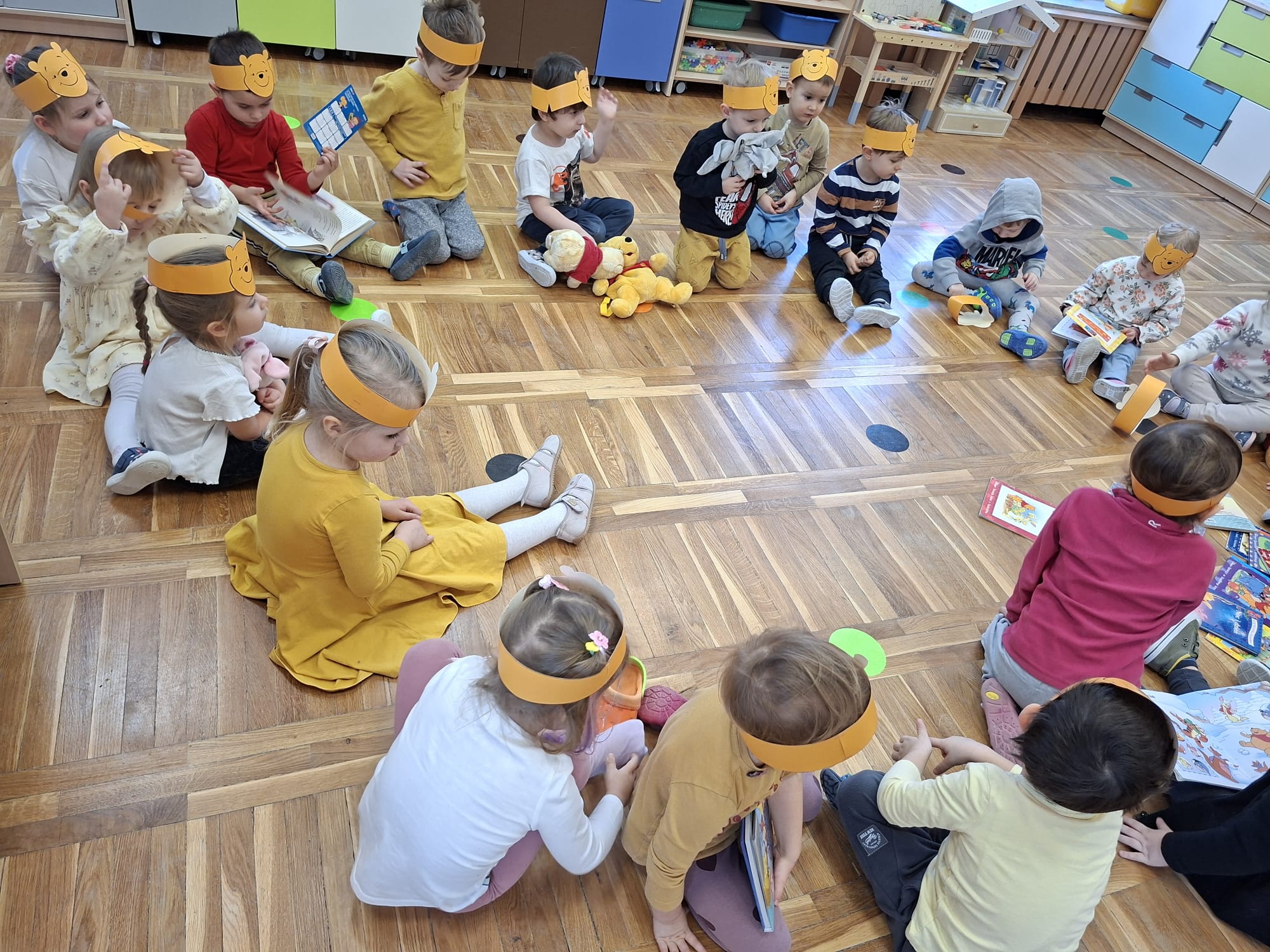 Dzień Kubusia Puchatka był dla naszych 3-latków pełen radości, uśmiechu i niezwykle ciepłej, bajkowej atmosfery. Tego dnia dzieci przeniosły się do świata Stumilowego Lasu, poznając przygody Kubusia Puchatka oraz jego przyjaciół. Wspólne czytanie opowieści, rozmowy na temat bohaterów oraz zabawy tematyczne pozwoliły przedszkolakom rozwijać wyobraźnię, zainteresowania czytelnicze oraz umiejętność uważnego słuchania. Dzieci z zaangażowaniem uczestniczyły w aktywnościach ruchowych i plastycznych inspirowanych postaciami z bajki.